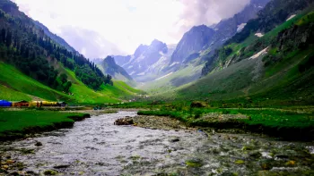 Sonamarg, which means 'meadow of gold' has, as its backdrop, snowy mountains against a cerulean sky. The Sindh meanders along here and abounds with trout and mahseer, snow trout can be caught in the main river.